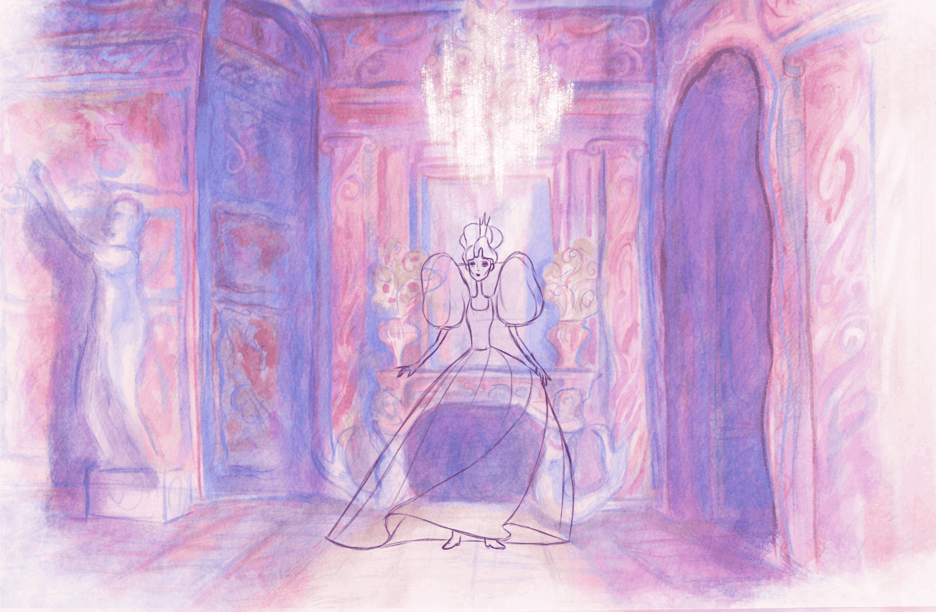 Confident she’ll be able to charm her way into being liked, the queen smiles politely and says yes to every request, until the story takes a turn for the worse. While being immersed in a world filled with glamorous ballrooms, very pink gowns and shimmering scenes, the price of people pleasing becomes tragically clear.
